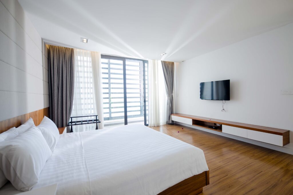 Villa được thiết kế theo phong cách hiện đại, sang trọng với màu sắc sáng sủa và thanh lịch với 3 phòng ngủ sang trọng cho 6 – 8 khách.